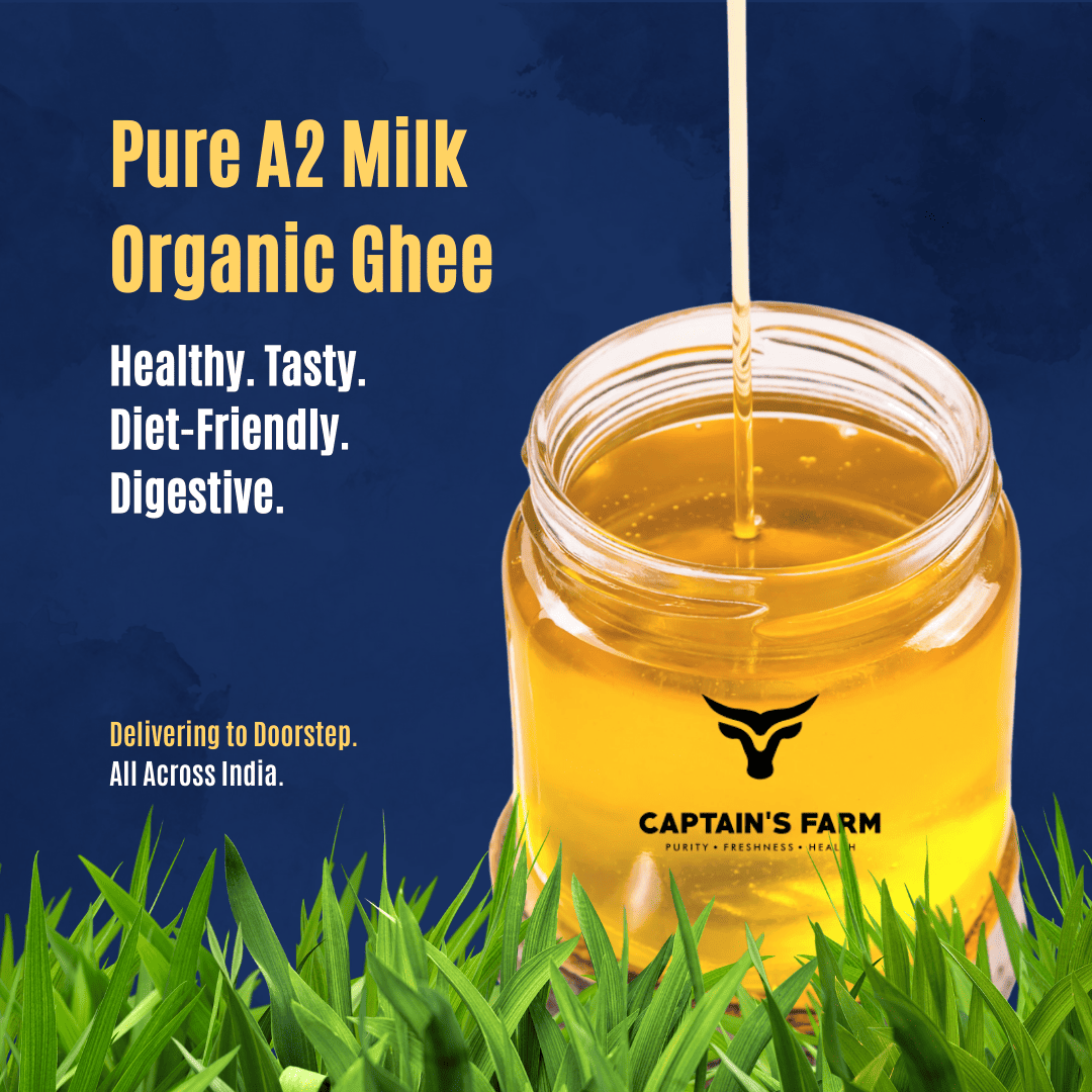 Get the best A2 cow ghee in India at the best price, only with Captain’s Farm. FSSAI: 11519024000550
